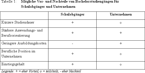 Vor allem in den wachstumsintensiven Branchen der deutschen Wirtschaft ist der Trend zu höheren Qualifikationen bereits heute besonders ausgeprägt. Die Spitzentechnologiebereiche und wissensintensiven Dienstleistungen fragen zunehmend hochqualifizierte Fachkräfte nach, Unternehmen aus diesen Branchen greifen bei der Fachkräfterekrutierung verstärkt auf Akademiker zurück. Ohne selbst Ausbildungskosten aufwenden zu müssen, könnten die Unternehmen in Zukunft auf dem externen Arbeitsmarkt standardisierte und international anerkannte Abschlüsse miteinander vergleichen – falls die politisch intendierte Vergleichbarkeit der Studiengänge in der Praxis auch erreicht wird, was bisher vielfach noch nicht der Fall ist.
