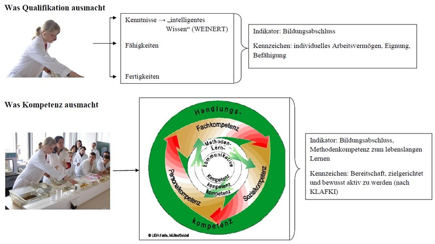 Es gehört zweifelsohne zu den Vorteilen des dualen Systems, dieser zeitgemäßen Symbiose zwischen Unternehmen und Berufsausbildung, Berufsbilder nicht an der Wirtschaft vorbei sondern absolut passfähig zu gestalten. Ausgelöst durch den Wandel in der beruflichen Arbeitswelt – weg von der Arbeitszerlegung, hin zu einer Integration und Vernetzung der Aufgaben – wurde die Forderung nach einem fach- und berufsübergreifend qualifizierten Mitarbeiter erhoben, der kreativ, selbstbewusst und selbstständig Probleme löst und ein hohes Maß an Teamfähigkeit besitzt. Niederschlag fand dieser Anspruch in der Neuordnung der Berufe, beginnend in den 90-er Jahren zunächst mit Bildungsgängen der Metall- und Elektrotechnik, sowie der Erstellung von KMK-Rahmenlehrplänen, die im Bundesland Sachsen, der Heimat der Autorin, 1 zu 1 übernommen werden und eine Untersetzung durch Arbeitsmaterialien für die Hand des Lehrers erfahren. Im Berufsfeld Agrarwirtschaft wurden bisher nur die Bildungsgänge „Tierwirt/Tierwirtin“ (2005) sowie „Pferdewirt/Pferdewirtin“ (2010) neu geordnet und der Bildungsgang „Fachkraft Agrarservice“ (2005) neu angelegt. Mit der Novellierung des Berufsbildungsgesetzes im April 2005 wurde den Ländern zudem die Option eröffnet, Berufsfelder aufzulösen, neu zu schneiden und so Berufsbilder in den aktuellen Kontext einer Dienstleistungsgesellschaft zu bringen. Diese zunächst auf neue Inhalte ausgerichtete Strategie forderte eine Didaktik, welche in stärkerem Maße auf die Abbildung komplexer beruflicher Handlungen und schließlich auf die Entwicklung beruflicher Handlungskompetenz fokussiert. Seit Beginn der 90-er Jahre wird in Deutschland der Begriff der Qualifikation verstärkt durch den Kompetenzbegriff substituiert, was darin begründet ist, dass Qualifikationen lediglich Aussagen zu situativen Anforderungen, nicht aber zu personellen Voraussetzungen zu deren Bewältigung beschreiben, während Kompetenzen eher Dispositionen von Menschen zur Problemlösung darstellen.