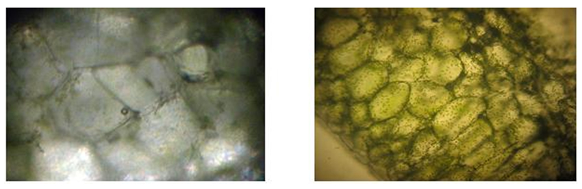 Abb. 8: Mikroskopie des Tumors im Vergleich zu gesundem Gewebe-Blattquerschnitt
