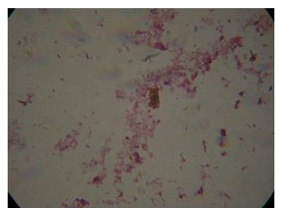 Abb. 9: Gramfärbung zum Nachweis der Bakterien (gram negativ)