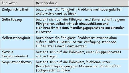 Abb. 5: Indikatoren einer Lernhandlung – Auszug (KMK, 2000)