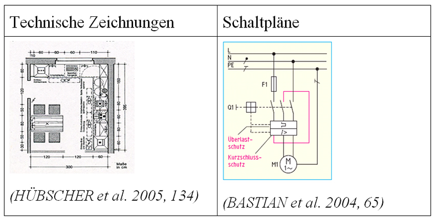 Neben Besonderheiten auf der morphosyntaktischen und der syntaktischen Ebene sind Fachtexte durch eine verhältnismäßig hohe Anzahl informierender Bilder gekennzeichnet. Illustrationen, die in Fachtexten vorkommen, sind nahezu immer informierende Bilder (vgl. WEIDENMANN 1994, 9 f.) wie Abbilder, schematische Bilder und logische Bilder (v. a. Diagramme und Tabellen).