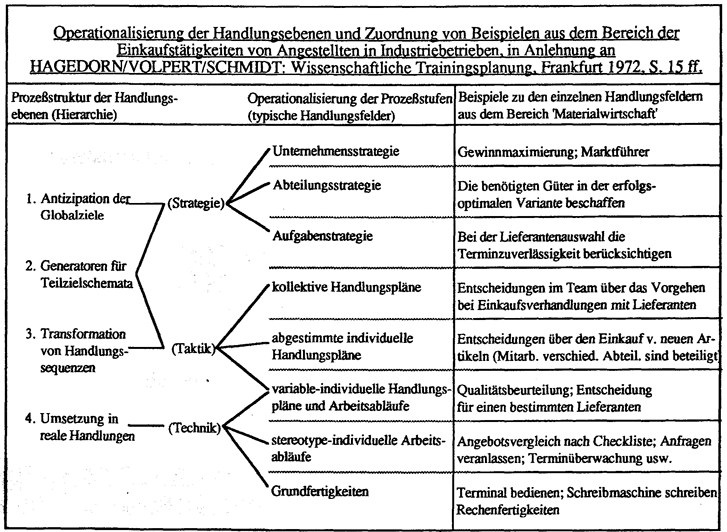 Einer prozeßbetonten Lernfirmenkonzeption wären solche Lernfirmen zuzurechnen, in denen der Problemhaltigkeit des Arbeitshandelns beim Sachbearbeiter besondere Aufmerksamkeit geschenkt wird. Daneben gehört aber insbesondere zu dieser Konzeption auch, daß der Lernende an den höheren Ebenen der Handlungsregulation beteiligt wird und mit den Strategien des unternehmerischen Handelns in den einzelnen Funktionsbereichen vertraut gemacht wird.