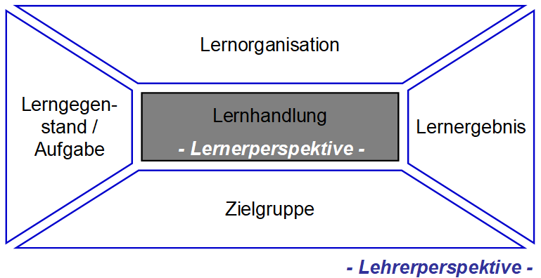 Zur Heranführung aller Studenten an den im Praktikum vorgesehenen eigenen Unterrichtsversuch erfolgt zu Beginn des Semesters ein Input zur Unterrichtsvorbereitung. In diesem Zusammenhang wird auf die insbesondere in den Modulen ‚Lehren und Lernen’ sowie ‚Kompetenzentwicklung’ erarbeiteten Theorien und Konzepte zur Unterrichtsplanung zurück gegriffen. Diese werden anhand des in Abb. 2 dargestellten didaktischen Strukturmodells zusammengefasst.